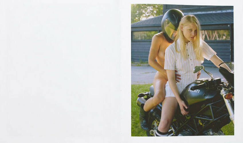 Rødland’s practice navigates through the problematic and seemingly unchanging heart of popular photography. Accepting neither the humanist realism of most photographic portraiture nor the postmodern role-play, Vanilla Partner explores the cultural complexities and archaic foundation of contemporary image-making. Reconstructed scenes of ultrasoft BDSM read like twisted metaphors for photography’s ability to freeze or capture. The book title, dripping in innuendo, also poses a question about the ambiguity of the relationship between the artist and his medium. Is Rødland acknowledging the medium’s straight foundation or does he see himself dominated by it? Many of the images also have explicit political references, often linked to the 1980 US Presidential election.