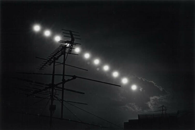 Astrology, once a scholarly tradition, binds astronomical phenomena to events of the human world. The Last Cosmology reveals Kikuji Kawada’s preoccupation with the cosmos, and his fleeting empathy for the abating custom of divination. Inspired by the apocalyptic sky-scapes of the painter Emil Nolde, Kawada photographed abnormal and calamitous weather conditions – gales that configure coiling cloud-patterns, electrical storms, or rain striking glass. Captured between 1980 and 2000, the work is part of ‘The Catastrophe Trilogy’, a chronicle which ties together the dramas of the skies with the end of two historical eras on earth: the Showa Era in Japan, ending with the death of the Emperor in 1989, and 20th century’s close. Kawada says, “I imagine the era and myself as an implicitly intermingling catastrophe... I want to spy on the depths of a multihued heart that is like a Karman vortex.”
