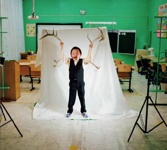 In the suburbs of Vorkuta in the north of the Arctic Circle, there is a boarding school that hosts only children of the Nenets, the nomadic people of the Tundra. In winter the school hosts about 60 children. In summer they live with their families. The photos by the Japanese artist Ikuru Kuwajima show the children as active and enthusiastic participants in his project; the classroom has become a photo studio. The children have brought objects with them that bear witness to their origins and the problems they face in adapting to the world of contemporary Russia. In many of the children’s drawings that Kuwajima has chosen for the back cover of his foldout book, there are still many traditional forms of these ornamental drawings. Ikuru Kuwajima communicates to us the magic and the energy of this distant children’s world; at the same time, he allows us to sense the gradual disappearance of the old ways.