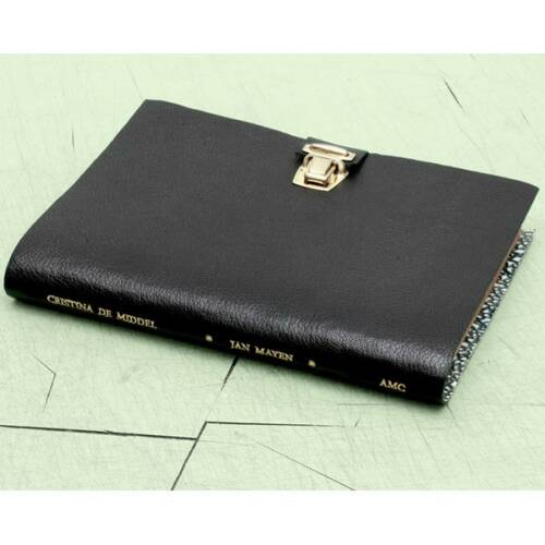 Comments: Hand-bound, black leather cover with a buckle clasp, in a protective card box,11 concertina folds, 15 x 20 cm, limited edition of 100
