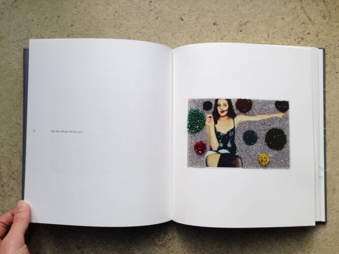 Sequence is an artist’s book that combines a selection of more recent works by the artist. The book’s title is a play on the word sequins, a material which Sissi Farassat frequently uses for her elaborately embroidered photographs, and sequence as a succession of images and work steps. Sissi Farassat deliberately slows down the photographic process by embellishing her analogue colour prints with semiprecious stones and/or sequins, weaving in threads as one might with a carpet, or embroidering the reverse side of photographs with the silhouettes of the persons portrayed on the front. In Farassat’s work each image is changed back into an object, making it both a critique of the image and an eye-catching device.