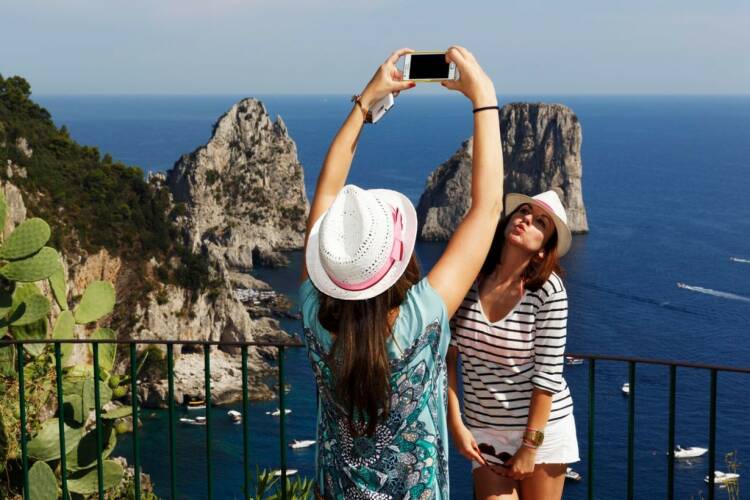 In one of Europe’s most densely populated regions, the seaside resorts are particularly crowded during the month of August and at the week-ends, by local residents with their anthropological rituals of gathering together – ironically documented by Parr’s attentive, amused gaze – but never mingling with the foreigners who are in search of icons of luxury and celebrity (Capri) and the picturesque (the Sorrento Peninsula, the islands of Ischia and Procida and the Amalfi Coast).