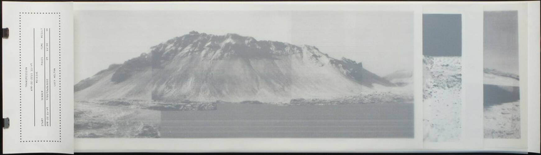 Nine panoramic thermal prints made by the artist. Synthetic paper wrap printed with UV ink. Japanese clip binding. Presented in a cardboard tube.