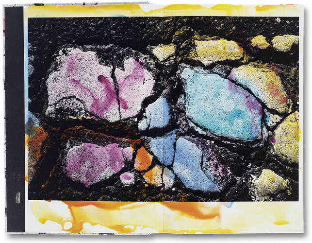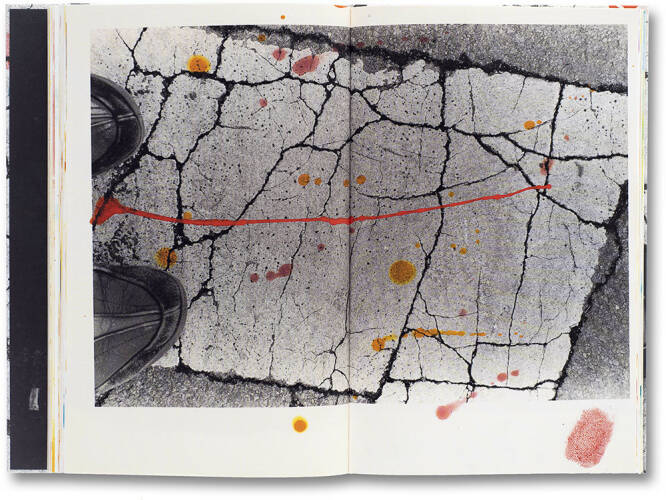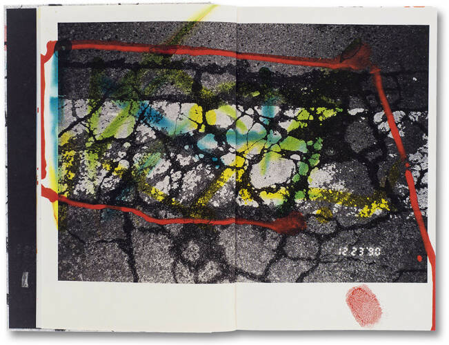 Hibi literally comprises a series of street photographs by renowned Japanese photographer Masahisa Fukase. Each of the black and white images painstakingly attend to the road’s surface – the worn road-markings, the fading lines and arrows eroded by the city’s innumerable inhabitants, a web of fissures in the asphalt. In 1992, Fukase printed and painted the works for a solo exhibition, 'Private Scenes ‘92', held at Nikon Salon in Tokyo. He overlaid a set of bromide prints with fluid drawings in brightly coloured inks and on every image the physical presence of the artist is traced, a shadow-presence which seems to offer a reading, an interpretation but one that can never be fully resolved.