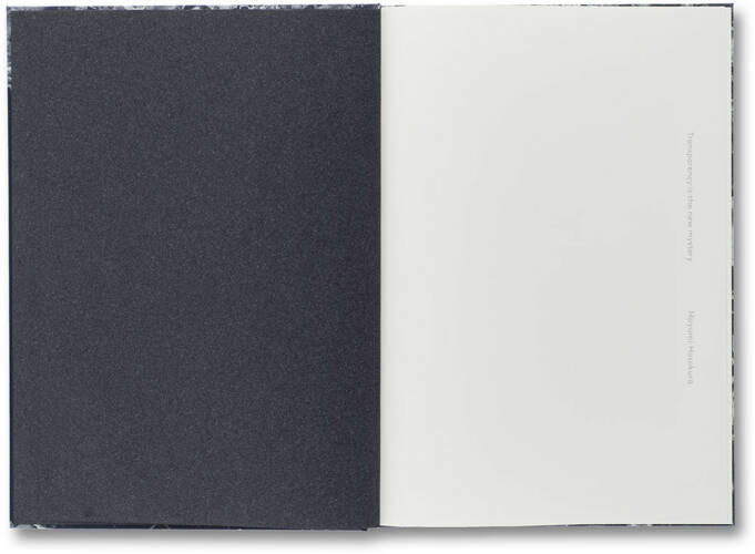 Transparency is the new mystery comprises twenty-two images of nudes and crystals, by Japanese photographer Mayumi Hosokura. The fragile silhouette of a hand, a coiled nude body, or the transfixing symmetry of crystalline minerals are shown in soft, translucent black and white images, held together by an enigmatic interior logic.