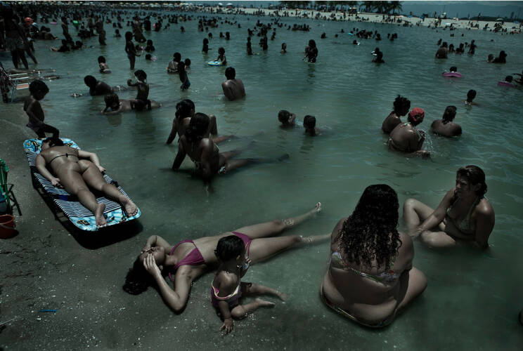 Ramos is the outcome of four summers photographer Julio Bittencourt spent in Rio de Janeiro registering Piscinão de Ramos’s sunbathers. His photographic vision devoid of prejudices and irony accomplish a unique portrait of this unusual place, where people enjoy good times of leisure while simultaneously dealing with issues such as violence and pollution. At the end, an afterword by the photographer Martin Parr comments this photobook’s powerful pictures.