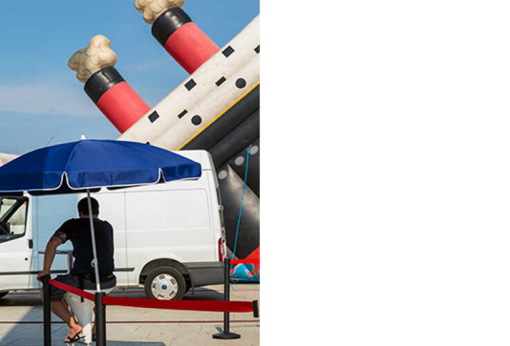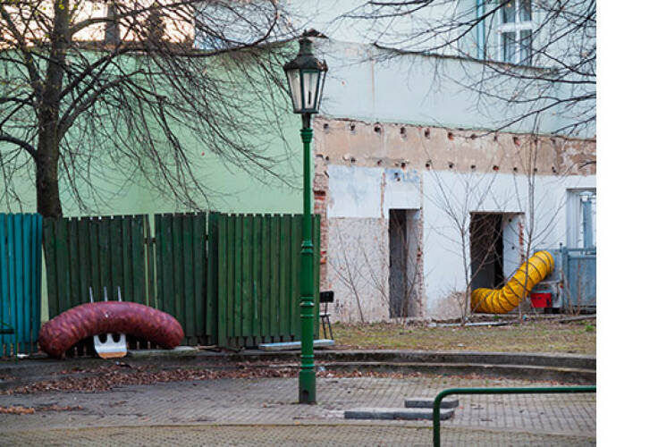His images even say more. Namely, that life in the so called civilized world is full of curiosities. Schumann photographs on the street, nothing special actually. And yet we see in his book the sinking of the Titanic, a woman who disappears under a magic hat, a sausage, which mutates to a ventilation tube, a designer furniture made of foam and bottom panels and a bikeway turning into a rushing river. The provided order is permanently infiltrated - by coincidence, incapacity or ingenious ideas.
