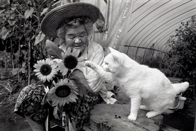 Soon after, a stray cat gave birth to kittens. Grandmother closely followed the progress of those kittens. Then she decided to keep the lonely cat Fukumaru whose siblings died one after another. Fukumaru followed Grandmother as she was working in the field, doing the laundry, and cooking in the ….Fukumaru is always very close to her every day.