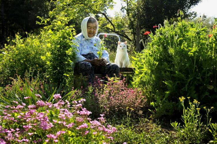 Green fields, blooming flowers and plump fruits ... in the colorful, diverse landscape, the life of an old lady and a cat is captured in the photographs.