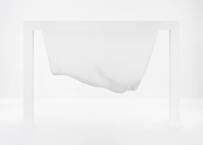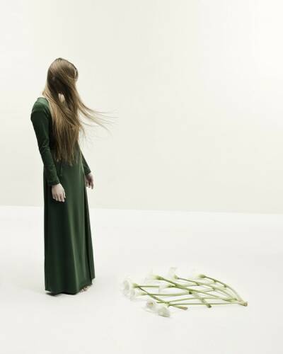 The first project, Return to Eden, is a story about trying to find our identity, about who we are, inside and out. This is also Wysocki’s first studio project. The second cycle of images, In-visibilis, was inspired by a collection of fashion for blind people, and relates to the senses. This is about a world for those who cannot see arranged by those who can. Both cycles make use of a highly ascetic artistic language of isolated events. White predominates. People and objects are clearly visible — but the real theme of the image is obscured. The last project, Exodus 2064, is the most spectacular of the three. This is a vision of the future that has come out of the artist’s experiments with hypnosis.