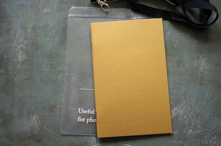 Comments: Second edition. Softcover, Gold paper cover, 32 Pages, 12 x 19 cm, copper staple binding, Comes with a key strap and silkscreened plastic sleeve
