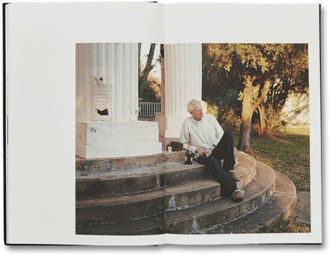 Leading us on a trail through the town and its surrounding forest, Ashcom presents scenes that point to a mysterious history, and people whose familial connections remain unknown: a forlorn old man, with champagne to hand, reclines on the corroding steps of a once grand home; a bloodied mattress is carried through an overgrown field; a solitary child burrows into a meadow, while on the streets, a man dutifully cleans a white picket fence – a vision that belies a local mural of a distant, ancient land.