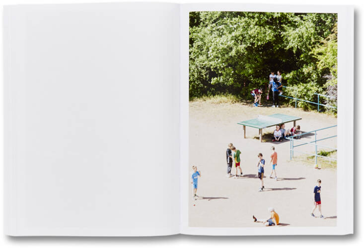 TTP is a series of photographs made from the window of Hayahisa Tomiyasu's eighth-floor student apartment in the German city of Leipzig. His southfacing view encompasses a public park with a ping pong table, which is the focus of his deadpan pictures. Each image is similarly composed, while the times of day, the seasons and the visitors to the table change. As we turn the page the function of the table mutates, from a tischtennisplatte (table tennis table) to a sun bed, a skate obstacle, a laundry counter, a kids' climbing frame, a work-out meeting spot, and a refuge from busy streets, among numerous other uses. Thanks to Tomiyasu's sustained curiosity, we observe the habits, humour and idiosyncrasies of human behaviour at the foot of this humble table.