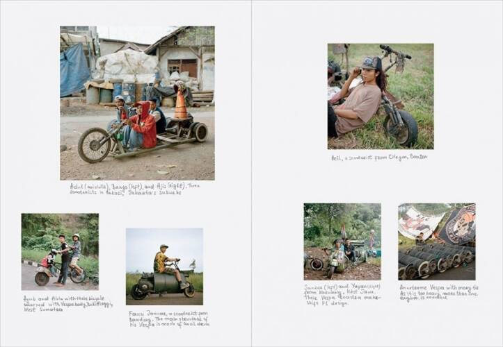 As if emerging from Mad Max movies, these scooterists wander around the country riding custom-built Vespas, which look too weird not only to outsiders, but also to people within the Indonesian Vespa community itself. People call these scooters “Vespa sampah” (“garbage Vespa”) or “Vespa gembel” (“Vespa drifter”), but the owners of these Frankenstein bikes call them “Vespa extreme”.It’s fairly hard to determine the early history of extreme Vespas. Their emergence by the early 2000s coincides with major changes in Indonesia, following the fall of Soeharto authoritarian regime in 1998. After the government reform, Indonesians suddenly enjoy a lot more freedom of self expression than ever before. The fall of Soeharto is also marked by a more relaxed law enforcement policy in general, and people in Indonesia are no longer afraid of the police as much as they used to be. This contributes to the development of this type of modified vehicle on the road, not only Vespas, but also transformed motorbikes and cars.It is unclear how many extreme Vespas exist all over Indonesia. They may number in the thousands and can be found all over the Indonesian archipelago, even in its most remote areas. Most of them use Vespa engines from the late 80s or early 90s, as they are more powerful than the earlier versions. Althought these Vespas seem to be designed for show, they can actually be ridden. Riding them for thousands of kilometers is very common, though they are not really roadworthy.Some of these Vespas have more than twenty tires attached to cheap DIY steel frames. Some are adorned with a buffalo skeleton, bamboo, garbage, or anything the owners could scrape along the road. It seems that the builders’ wild creativity has no limit and the classic Vespas are merely a starting point. Its uniqueness, which represents freedom of expression, attracts metalheads, punks, and rastafarians as its die-hard fans.