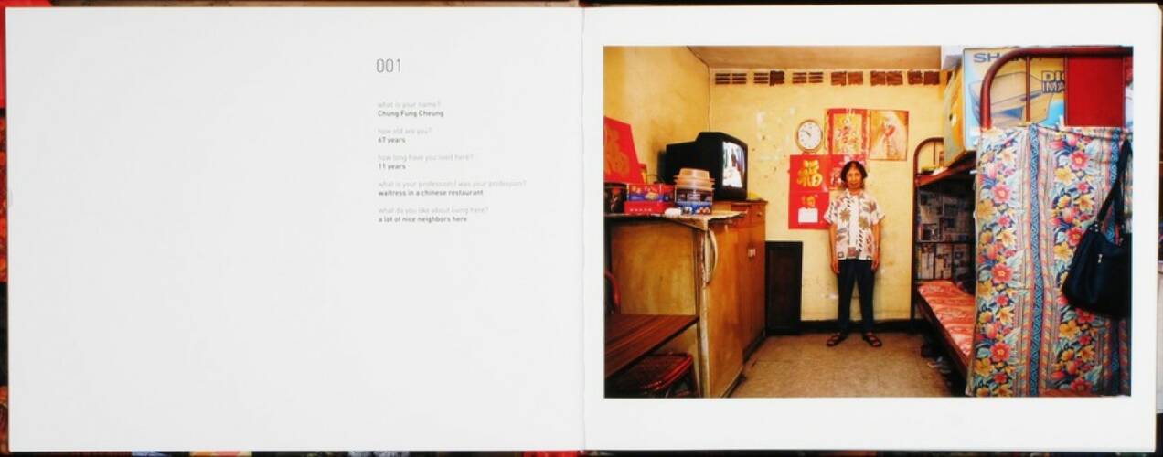 As a way to investigate the social ramifications of living in such dense conditions, with his series ›100 x 100‹ Wolf juxtaposes the anonymity of the exterior residential complexes in ›Architecture of Density‹ with interior portraits of 100 individuals and families surrounded by all their belongings living in public housing consisting of identical 100-square-foot apartments allocated to each family. He obtains the same vantage point for each picture forming a typology that allows the viewer to study how the individuals make the confined spaces their own.