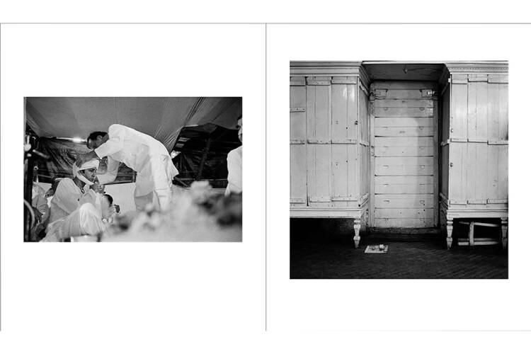Dayanita Singh’s Museum of Chance is a book about how life unfolds, and asks to be recorded and edited, along and off the axis of time. The inscrutably woven photographic sequence of Singh’s Go Away Closer has now grown into a labyrinth of connections and correspondences. The thread through this novel-like web of happenings is that elusive entity called Chance. It is Chance that seems to disperse as well as gather fragments or clusters of experience, creating a form of simultaneity that is realized in the idea and matter of the book, with its interlaced or parallel timelines and patterns of recurrence and return. The eighty-eight quadratone images in the book will also appear on the front and back covers in random pairs, transforming each copy of the book into a distinct piece of work by the author.