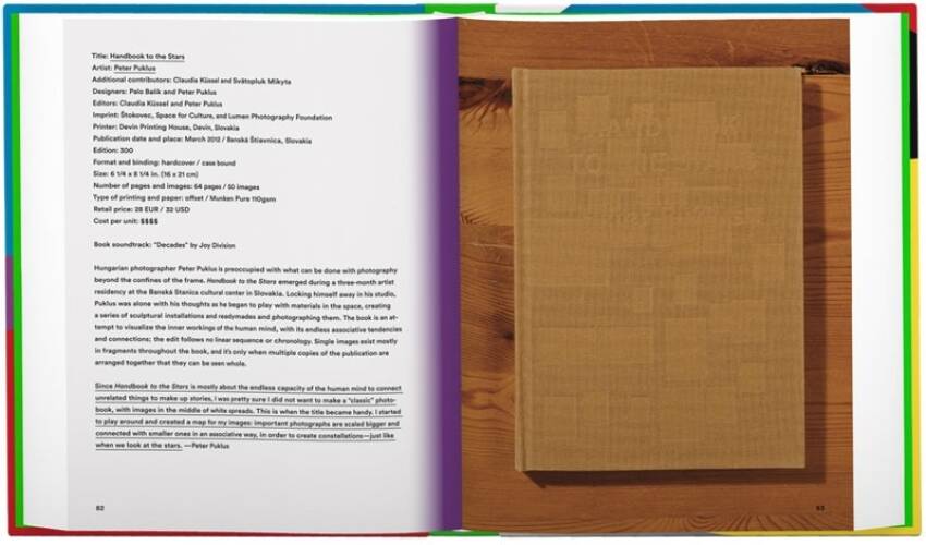 An economic and cultural revolution has shaken the photobook world in the last five years: self-publishing. An army of photographers operating as publishers have had an instrumental role in today’s photobook renaissance. This book offers a do-it-yourself manual and a survey of key examples of self-published success stories, as well as a self-publishing manifesto and list of resources.