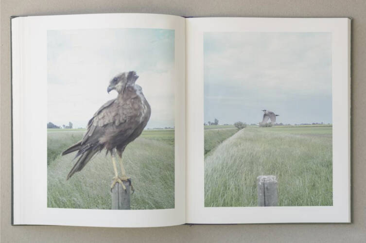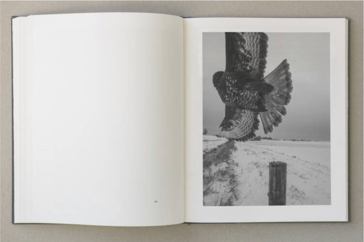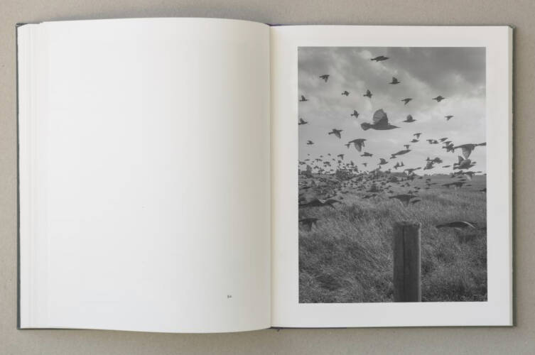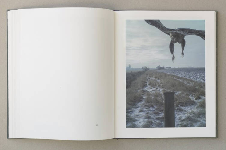 A pillar knocked into the ground next to a stream in a flat, open landscape, trees and houses visible in the distance, beneath a vast sky. That is the backdrop to all of Stephen Gill´s photographs in this book. We see the same landscape in spring and summer, in autumn and winter, we see it in sunshine and rain, in snow and wind. Yet there is not the slightest monotony about these pictures, for in almost every one there is a bird, and each of these birds opens up a unique moment in time. We see something that has never happened before and will never happen again. That it takes place in the midst of a landscape characterised by repetition, in which time is cyclical, sets up a keen existential dynamic: on the one hand, everything has happened before, there’s nothing new under the sun; on the other, every moment is unique and carries the hallmark of the miracle: what happens happens only once and never again.