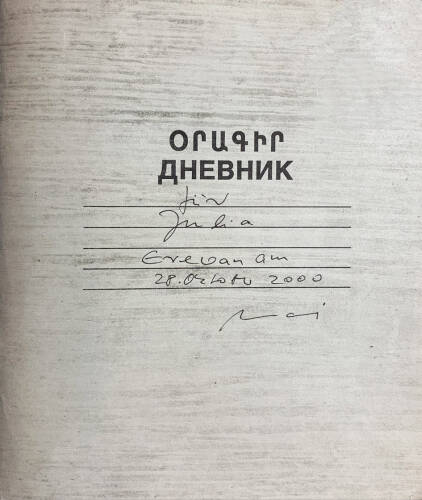 Throughout her prolific career, Ursula Schulz-Dornburg has led the way in documenting man-made environments on the cusp of change and transition. The sites she visited were often remote and difficult to access. In 1996 and 1997 she traveled to Armenia and with a small portable camera made visual notes of remnants of Soviet architecture during her walks through the capital city of Yerevan. She developed the films on her return to Germany and in 2001 she edited and compiled the prints into a traditional notebook used in Armenian schools which she had bought back from one of her trips. This hand-made sketchbook was then dedicated to her daughter, Julia, who was studying architecture at the time.
