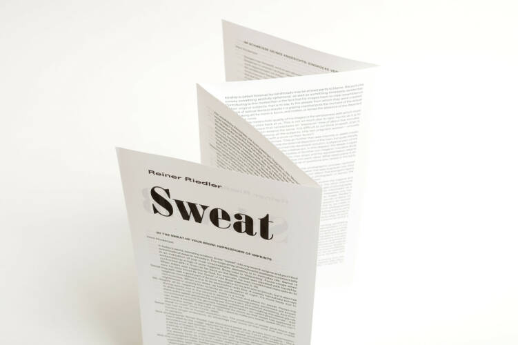 Photographer Reiner Riedler has discovered sweat as an artistic form of expression.Fascinated by the image captured by the sweat on his T-shirt after jogging – like a spontaneous self-portrait – he has used the sweat produced by others to create a series of images. In order to achieve this, he approached the renowned Fraunhofer Institute in Munich which provided him with a special sensory material that could be placed above or underneath his perspiring models. In doing so, Riedler used the sweaty body as a kind of rubber stamp to create life-size negatives. He then photographed these and transformed them into monochrome paper prints.“