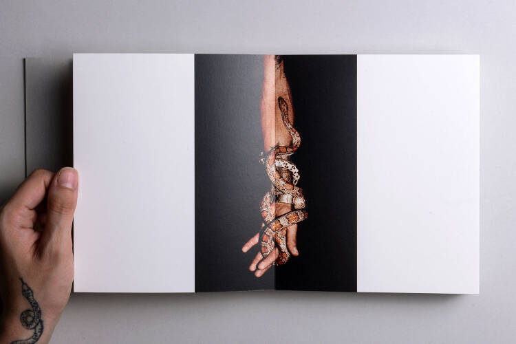 ‘Oyster’ is a 84 page Leporello book. This form allows the reader to have a free and non linear read of the publication. It allows a circular reading. Again, an Ouroboros.