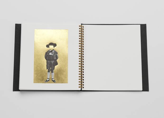 Carolle Benitah embroiders with her brush and transforms small abandoned prints into works of art. Her works with gold leaf, always studied, calibrated and relevant, make the images come alive and visible again. Faces touch a golden background, others disappear, lines guide the gaze, joining or separating two elements, bubbles float like small planets of pure gold.