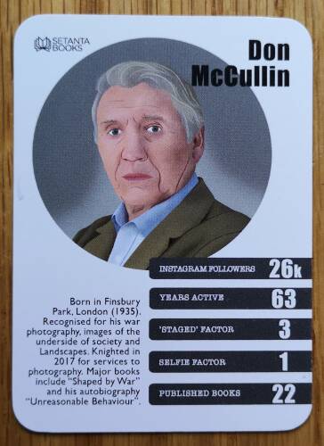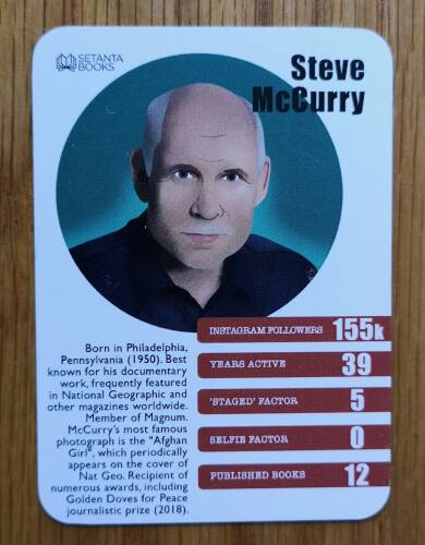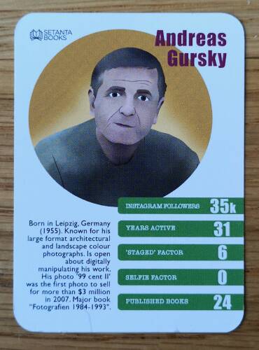 This is a set of 50 cards featuring trivial facts about 50 different contemporary photographers in a card pack.