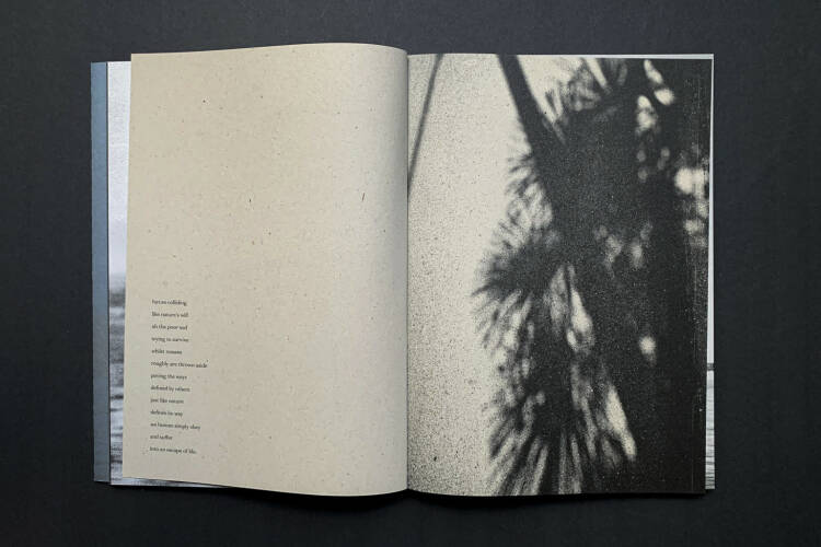 In her black and white images, Lansink traces the feeling of everyday saviours like Zwartendijk through an intuitive view of Kaunas and Japan. She mixes scenes from ordinary daily life with shots of blurred confusion, and layered scenes with reflections that hold us apart from what we see. In his series of short poems, van Hulst muses on the potential of our human existence: we are all afraid and alone, together. In combination, the photographs and words dwell in the possibility of any given moment for a person to choose fear, apathy, and anger, or to choose compassion and kindness. Gently, they urge for kindness.
