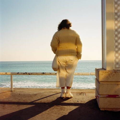A vice – the Promenade on the French Riviera: this is the first picture that crosses my mind when I look at these photos, simple photos, like the postcards of the ‘70’s. Don’t ask me why, but they recall Ettore Scola’s wonderful movie, “A Special Day”. The square shape is appropriate and is rare in photography. I like the photographs. This is Marco, from Piacenza, and it seems strange to see him in action on the beach, instead of on the hillside, but obviously, we tend to search for what is unknown, not what is known. A solid thread joins Marco’s photos, and it’s the moment in which they are shot, or at least it’s the impression we get of the light, the breathing space of the day, which is about to end, and the evening, which is drawing nearer. Actually, Marco’s photos contain much more than Promenade sensations – they display the faces of an accomplished immigration, of a modern and maybe lonely society. Yet letting my eyes wander even more freely, I notice the light, and ask myself: Is this the place of departure? Are these people all waiting to leave? The light always comes from the sea, the shadows are the condemnations of the Earth, not of the horizon, and thus of us human beings. A place of stalemate, with no seasons. So many lies can be told while photographing the truth.