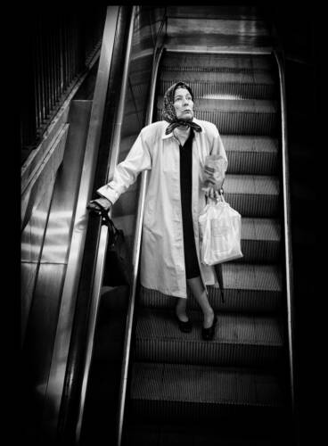 I decided to hone in on an escalator at Grand Central, where people stood still, while (ironically) in motion. It was the one place in the station where the cacophony of movement streamed into one line. Here, people stared into space, disengaged, while others acknowledged me, even performed for me. Then they were gone...