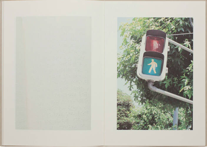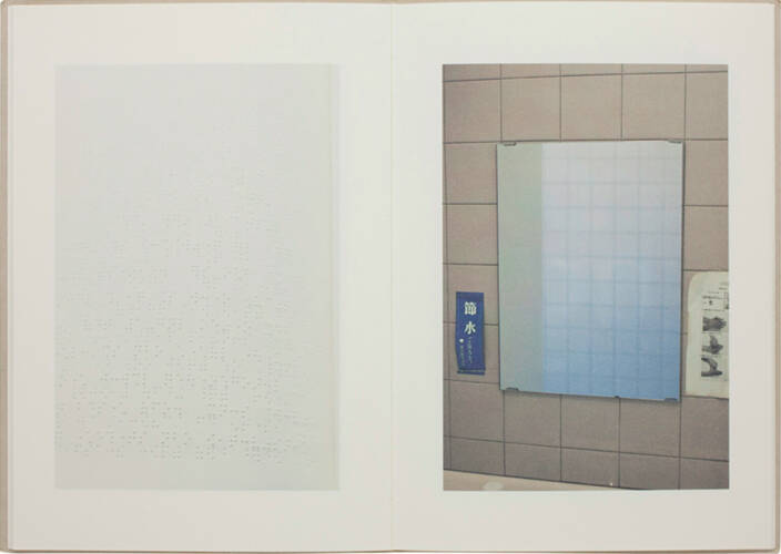 Tomoki Imai usually uses 4x5 format camera with a tripod as we can see his published works in the past, like Mahiru - in the middle of the day, Seigensha Art Publishing inc, 2001, Light and Gravity, Little More co., ltd, 2009 and etc.. This book was composed of 24 images by using 35 mm photography works with MATCH's suggestion. Among images with beautiful light surrounding, the entrance of an obsolete cafe, water fountain of a park, a couple at a street crossing, white bird in a cage.. we see 8 photographs of the book pages in braille. They are reproduced from the book, Truman Capote's short story A Tree of Night. The photographer chose the subjects in deep quest of answers, how the photographer could sympathize with blind persons. is that possible? The journey of Imai between visible and invisible makes feel us everlasting loneliness in a labyrinth beautifully.