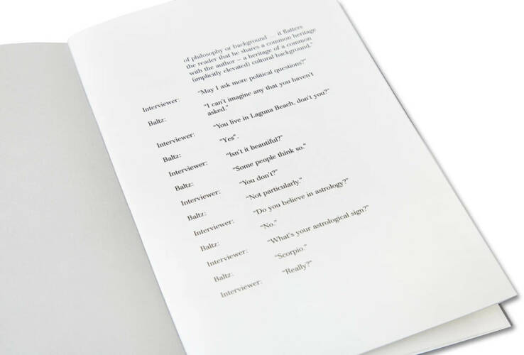 Baltz’s interview is fully annotated with an introductory essay by Duncan Forbes.