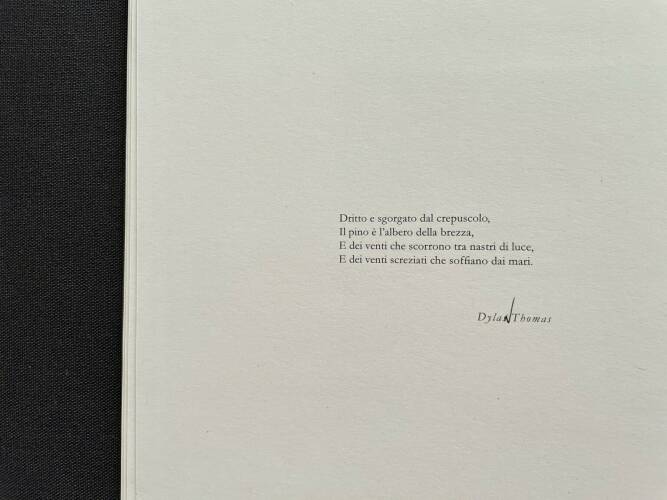 Comments: Closed book dimension: 25x32 cm Paper: Selena New Ivory Burgo 100 gr + old papers found in drawers Quotes and poems: Novalis and Dylan Thomas Languages: Italiano, Deutsch, English.