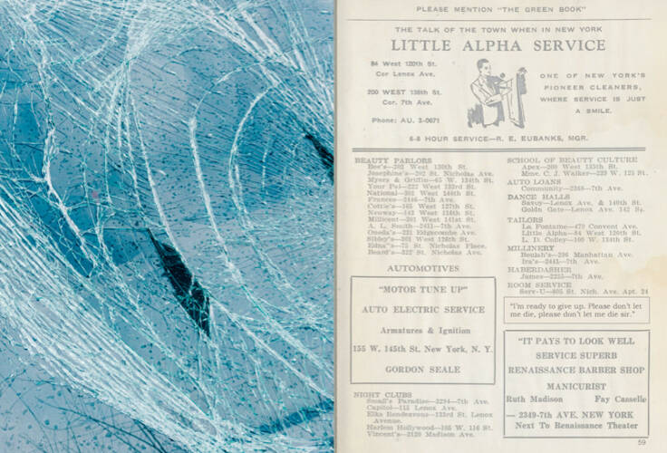 This multi-layered work explores the Black experience of driving in America over the past 85 years. By picturing how it has too often been marked by fear, violence and death, A Parallel Road challenges representations of the American ideal of the road trip that have long dominated our view through artistic and literary media. Referencing the historical Negro Motorist Green Book, and layering archival and new images, it examines the question of how long the road will continue to be a site of violence and oppression for Black people in American society.