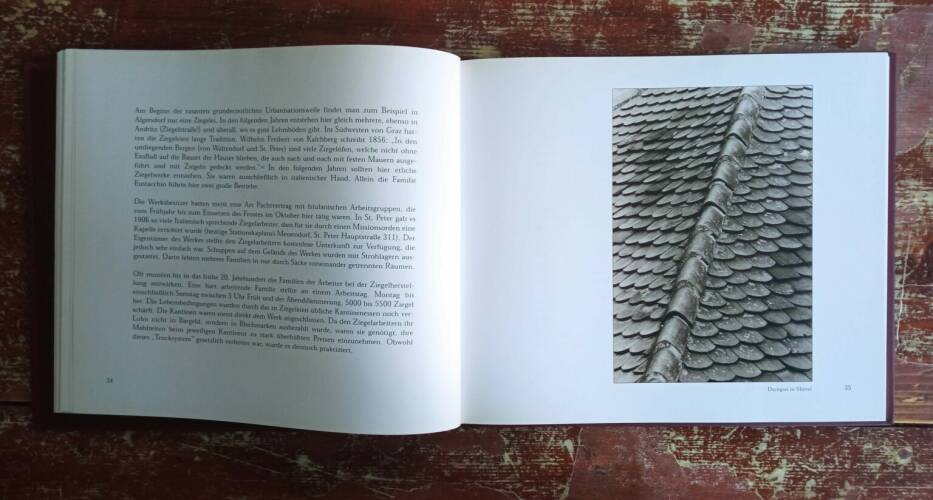 This illustrated book was the result of an interdisciplinary collaboration. The idea came from Helmut Kocher, who as a master roofer has a lot to do with the roof landscape in Graz. The work is conceived as a travel guide that explores the roof landscape of Graz from the perspective of the historian as well as the worker.