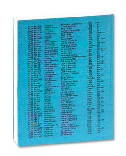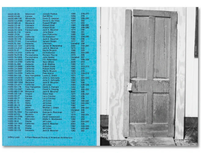Drawing from the nearly half a million photographs and documents comprising the Historic American Buildings Survey held in the US Library of Congress, this book constructs a fictional ‘one-way road trip’ across the United States, weaving north and south across the Mason-Dixon line while tacking west. In A Field Measure Survey of American Architecture, Jeffrey Ladd uses the HABS archive as a surrogate in order to manifest a portrait of his former country at a moment when its democracy seems imperiled.