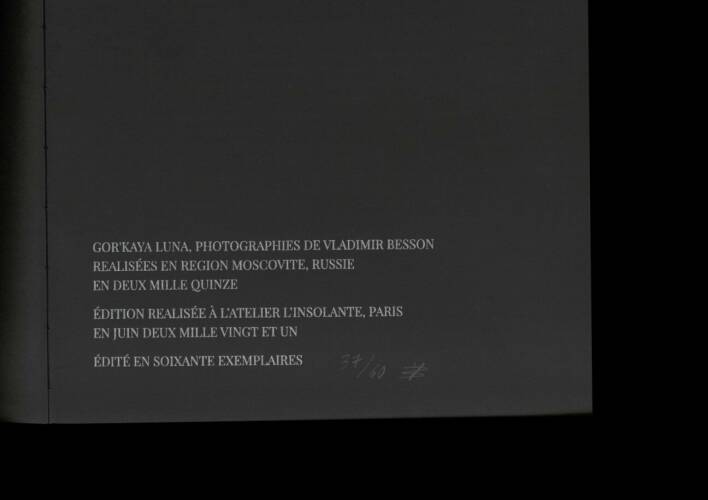 Gor'Kaya Luna (The bitter moon) by Vladimir Besson a recent self publication totaly realized in silverprint silkscreen. All photographs were taken around Moscow in Russia during the full moon.