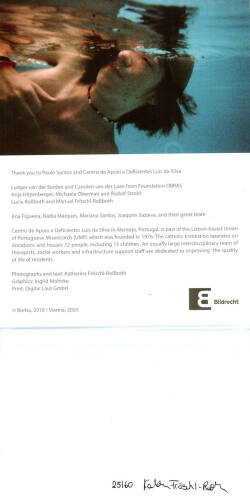 The series provides insight into a few hours of hydrotherapy in the swimming pool at “Centro de apoio a deficientes Luís da Silva” close to Borba in Alentejo, Portugal. Hydrotherapy is a special form of therapy that is applied in waters. Buoyancy is a force that acts against gravity with the effect of loss of weight. Physical qualities of water are used to improve coordination, relax the body, reduce pain and train balance and movements. Water gives our body abilities it is not able to use on lands. Especially for people who are not able to move unlimited that ́s a fact which is of special relevance.