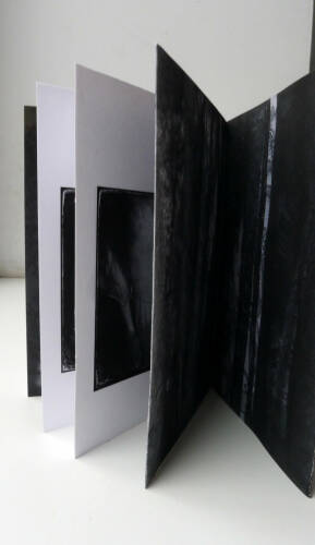 Comments: Various papers // a.o. double layere kozo washi paper (14 gramm), Epson Paper. Leporello, Handmade: glued, pressed. 12,5 x 9 cm.