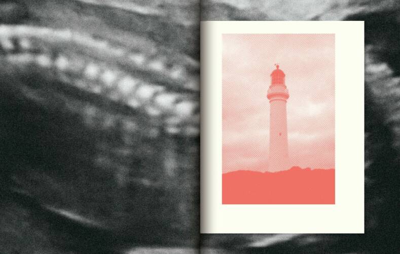 Riso and offset printed, this uniquely handmade book was published in a limited first edition of 250 copies, redolent of the number of days of gestation before the premature birth of the author’s son. Additionally, 30 copies from a special edition each come with a choice of one of two prints. This number is indicative of the number of days left until the child’s due date. Created as an editioned art book, each copy is signed and numbered. A variety of papers were used to reflect a haptic complexity in addition to a soft french fold that feels full and fleshy in the hands. A chaotic and varying bind with red string is a nod to the stitches used during the emergency caesarean birth of the child and no book is precisely the same.