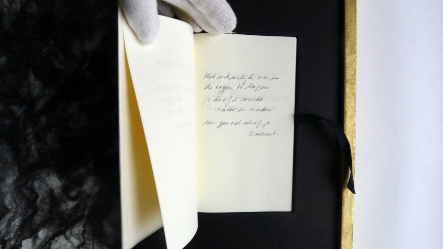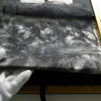 Comments: 15 photograps with hand-written text; printed on Japanese Kozo paper // 14 gr. // wrapped in handmade silk; box covered with crumpled paper.