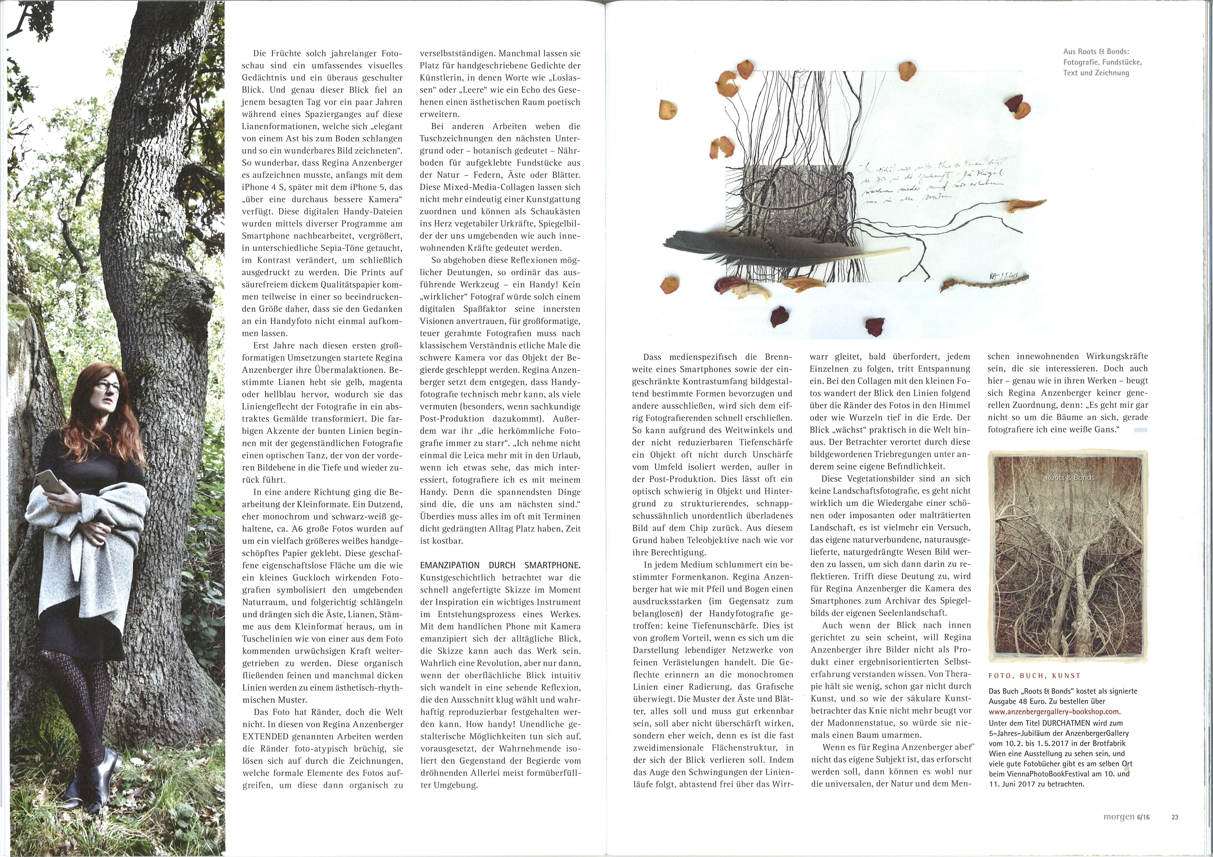 „It all started with one particular tree in the winter forest that caught my eye during one of my walks with my dog Shakeera. I kept returning there over an entire year and photographed the tree through every season. What especially fascinated me were the vines which elegantly wound themselves down to the ground from a branch, creating an image of endless bonds. With the forest as a source of inspiration and energy for all creativity, the roots and bonds became my theme." (Regina Anzenberger)