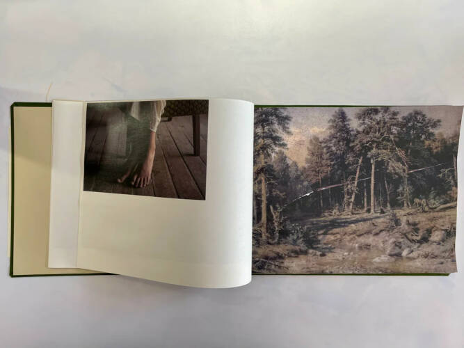 Comments: 250 copies numbered and signed, trade edition. Closed book dimensions: 33x25 cm. Languages: French and English. Paper: Musa Green Book 85 gr Burgo; Pergamenata Naturale Fedrigoni 90 gr; Majestic Candlelight Cream Favini 250 gr. The book is covered with Savanna Wood Green canvas and hot engraved in gold. Handmade perfect binding. Editing by Ilias Georgiadis and Claudine Doury. Book Design by Matilde Vittoria Laricchia. Handcrafted realization by Eugenia Koval.