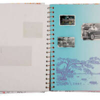 This album consists of 35 photographs I collected at antique markets and via websites in China over the past decade. The colourful graphics are copied from an album originally produced in the 1960s which offers a historical tour along the banks of the famous West Lake. The portraits capture the futuristic appeal that machines like cars, planes or televisions once had. Like the invention of the internet, smartphone or e-bike in recent decades, most innovations slowly slip away into the common present.”