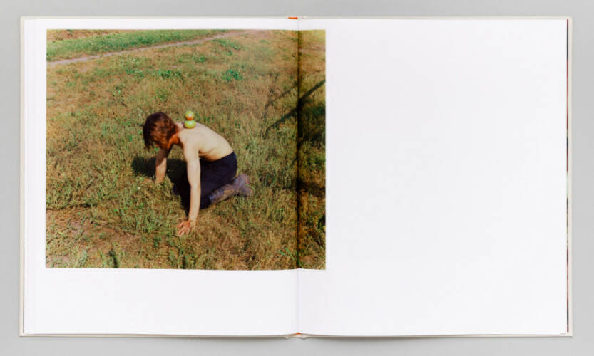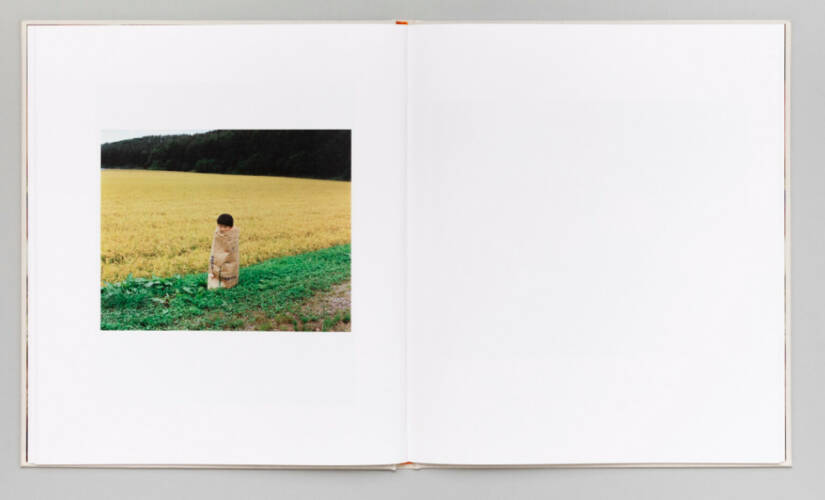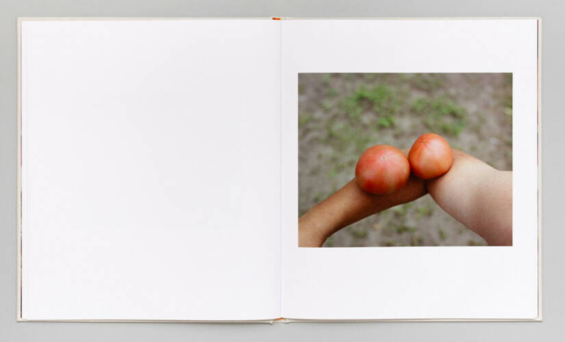 Staged on a farm in rural Japan, externaling Higashikawa in Hokkaido, Osamu Yokonami’s (b. 1967, Japanese) images demonstrate his particular use of photography as an artistic medium. Working with straightforward camera angles, Yokonami transforms ordinary bodies, farming tools and the local produce into haunting images—unexpectedly absurd and familiar. Headless figures, an aubergine-masked face, an abandoned baby on a paper bag, a topless character submissively kneeling in the grass while balancing two large tomatoes on their back. The series suggests a performative and complicit moment between the photographer and the people portrayed. As one feels the vulnerability of the subject facing the lens, one wonders: who is playing who in this image?