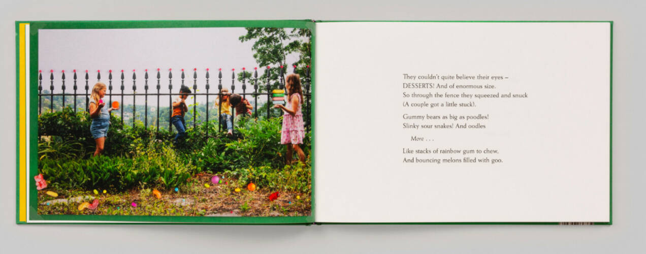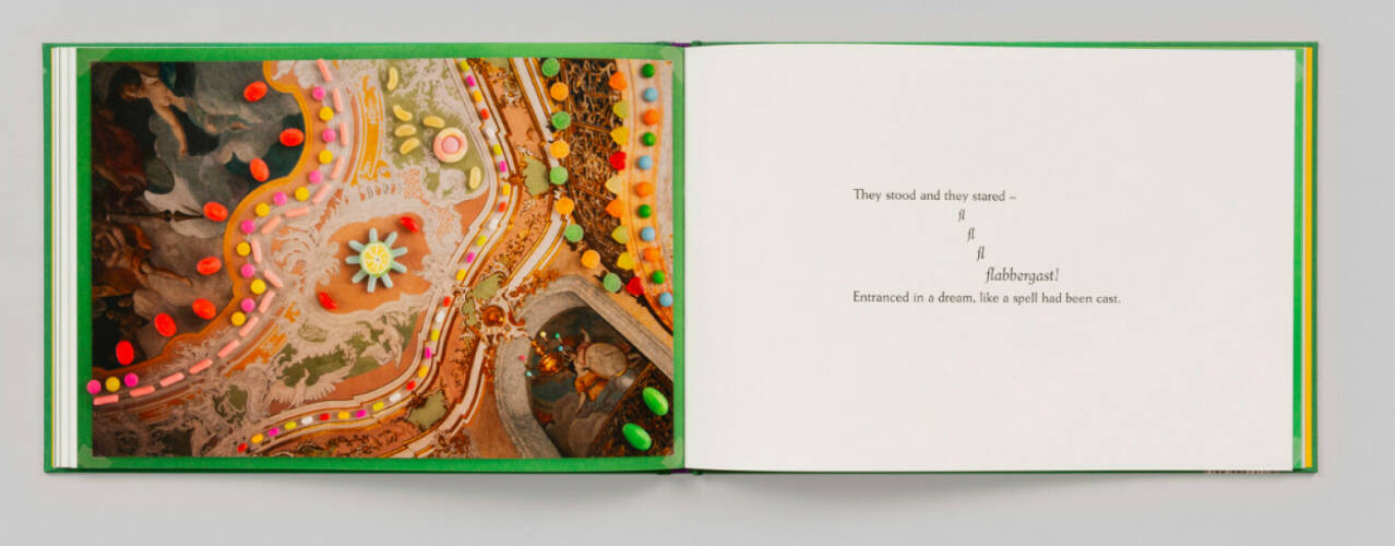 A child always has room for dessert. But have you ever seen actual rooms for dessert? Embark on this delicious adventure, full of giant gummy bears, mountains of jelly and cream, a popcorn ocean and more, from children’s book team Jan von Holleben and Monte Packham. Rooms for Dessert follows five children on the hunt for sweets in a grand palace, who end up discovering all kinds of secrets and surprises. In fantastical collages von Holleben has inventively combined the photos he made in Germany’s baroque Heidecksburg Palace with an array of real confectionery. Packham tells the story in playful, humorous verse that captures the children’s curiosity and mirrors the opulence of the palace. Closely interacting, image and text create a fairy tale for today. The book’s message? With a little imagination anyone can transform reality into a land of fantasy—the sweetest things in life aren’t just those we see with our eyes.