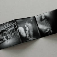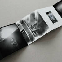 A distinct element of the book lies in its use of test strips — photographic leftovers from the printing process, left soaking for weeks in chemical solutions. Once dried, they bear marks of decay and transformation, ghostly echoes of the original image. In the book, reproductions of these spectral fragments are woven like relics of a memory in flux — imperfect, beautiful, and haunting — and each is carefully torn and glued in by hand after the printing process. In one of the collector’s editions, an original, signed strip is also included as an additional piece.