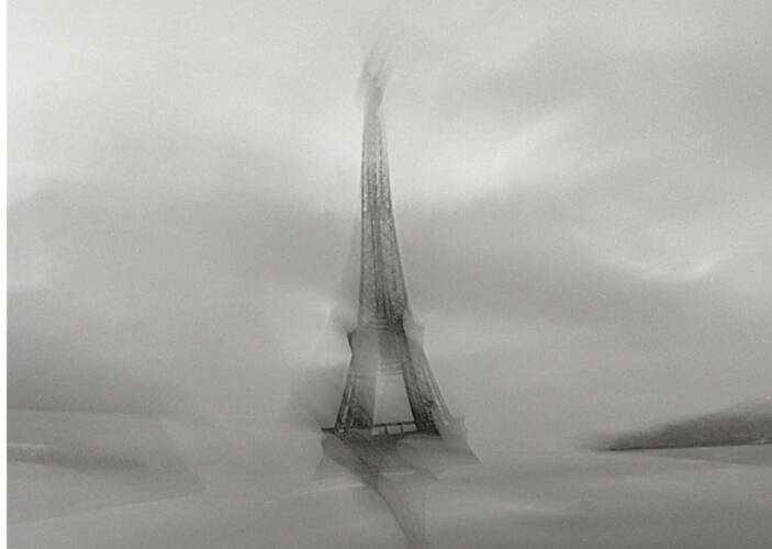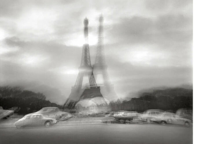 Paris is the Eiffel Tower, the Seine, the Jardin du Luxembourg; it is also the cafés, the women with outré headgear and the cats. However, Groebli's cat is no ordinary domestic feline; she is the guardian of perfumes displayed in a shop window, while watching over the children of Paris at the same time. A young woman appears to have a halo thanks to the wall behind her. We see the Eiffel tower, alone and twisted in the distance. And so, as we stroll through the city with René Groebli, we are greeted by surprises at every corner.