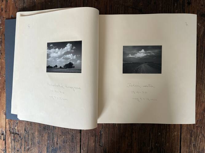 83 black-and-white lithographic reproductions based on the original negatives from the collection of M. Khol, as well as 1 original black-and-white photograph by M. Khol; published in the year marking the 100th anniversary of the birth and the 20th anniversary of the death of J. Sudek; published by MoraviaPress, Břeclav, 1996, copy 106/300, signed by the book’s contributors: Jaroslav Boček (text), Pavel Jedlička (design), and Miroslav Khol (photographs); the publication was awarded in the competition “The Most Beautiful Czech Book of 1996” and was also named Best Photography Book of 1996/97; softcover, very good condition, original protective cloth case.