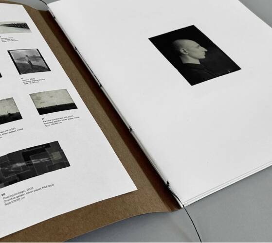 A fully handcrafted edition, conceived in continuity with the installation: materials, test prints, editing, and sequencing were developed step by step, through to the final object. Each copy is handmade and authenticated by the artist.